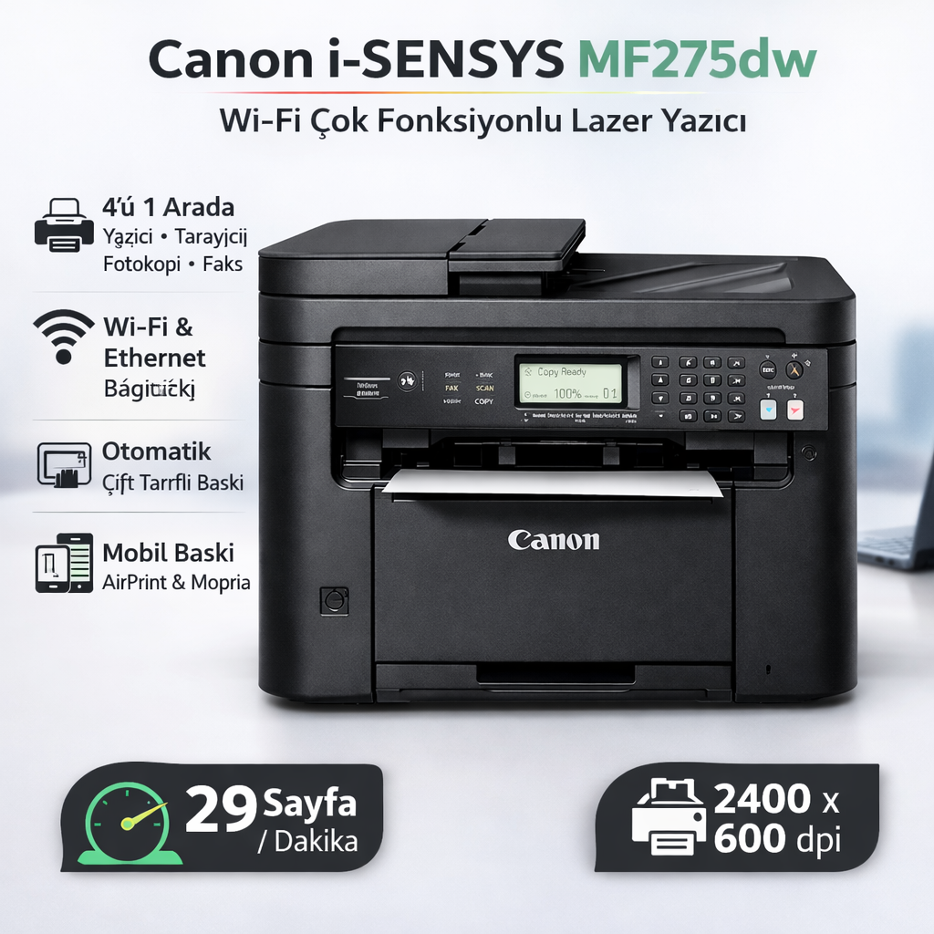 Canon I-Sensys MF275DW Wi-Fi + Tarayıcı + Fotokopi + Faks Mono Çok Fonksiyonlu Lazer Yazıcı